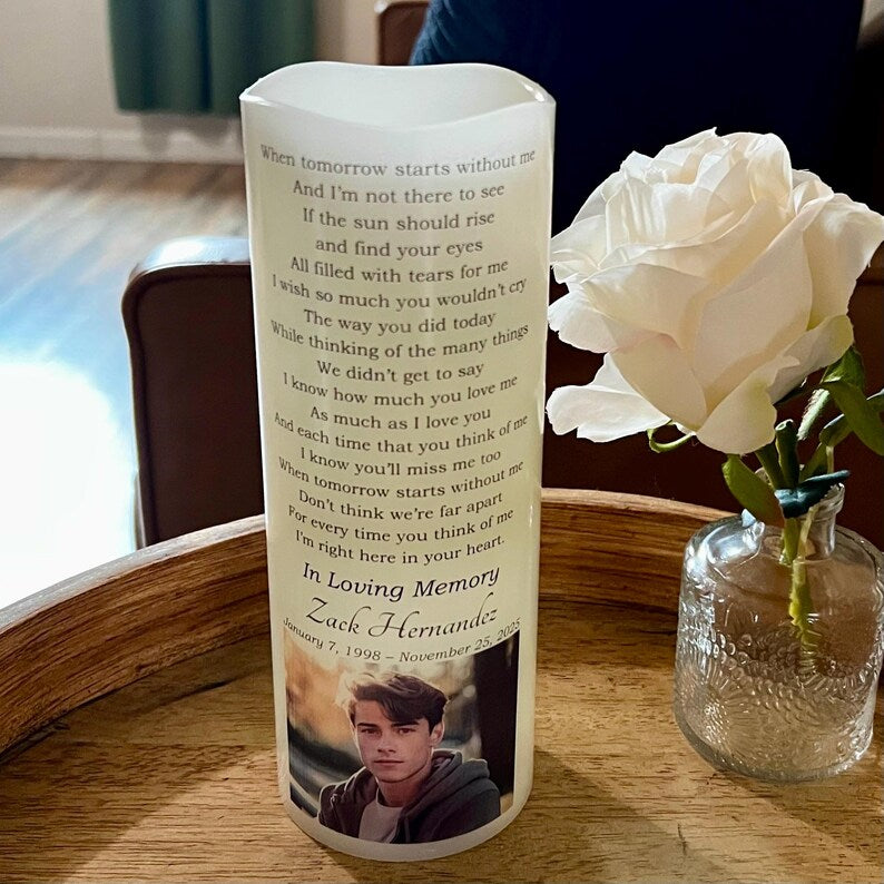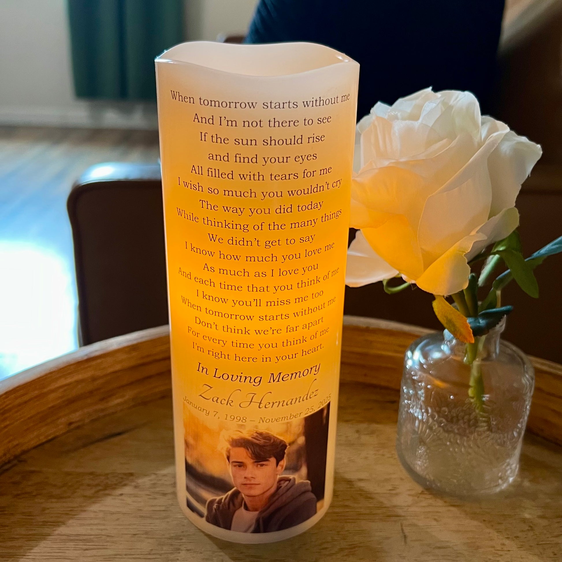 Personalized Memorial Candle with Photo & Poem • LED Remembrance Keepsake with Name & Dates