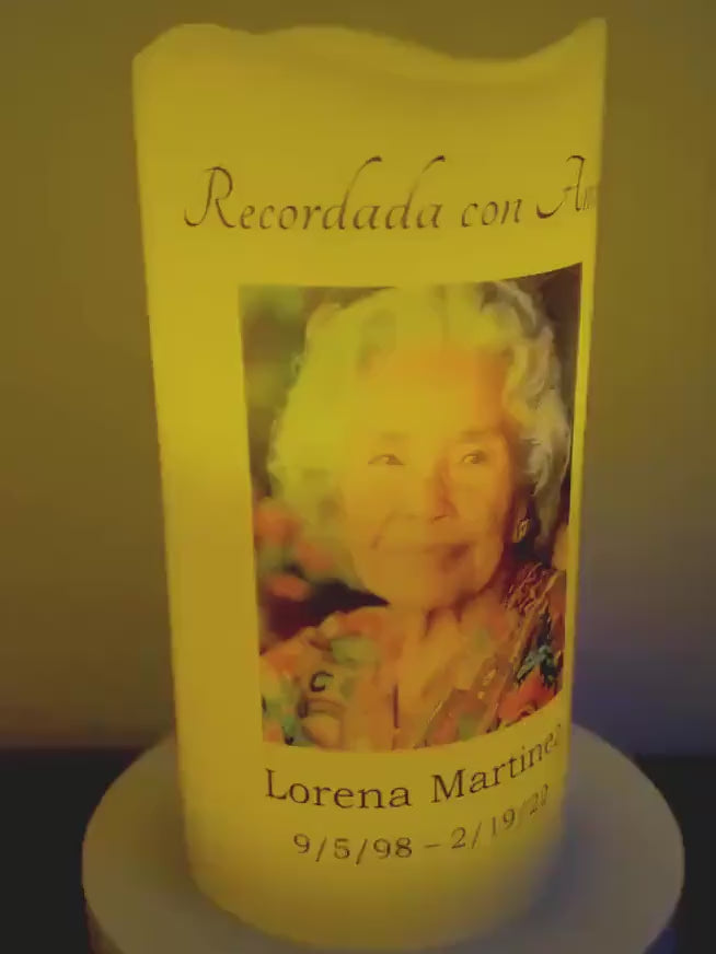Minimalist Spanish Memorial Candle with Photo, Name & Dates | Personalized LED Remembrance Candle with Quote Options