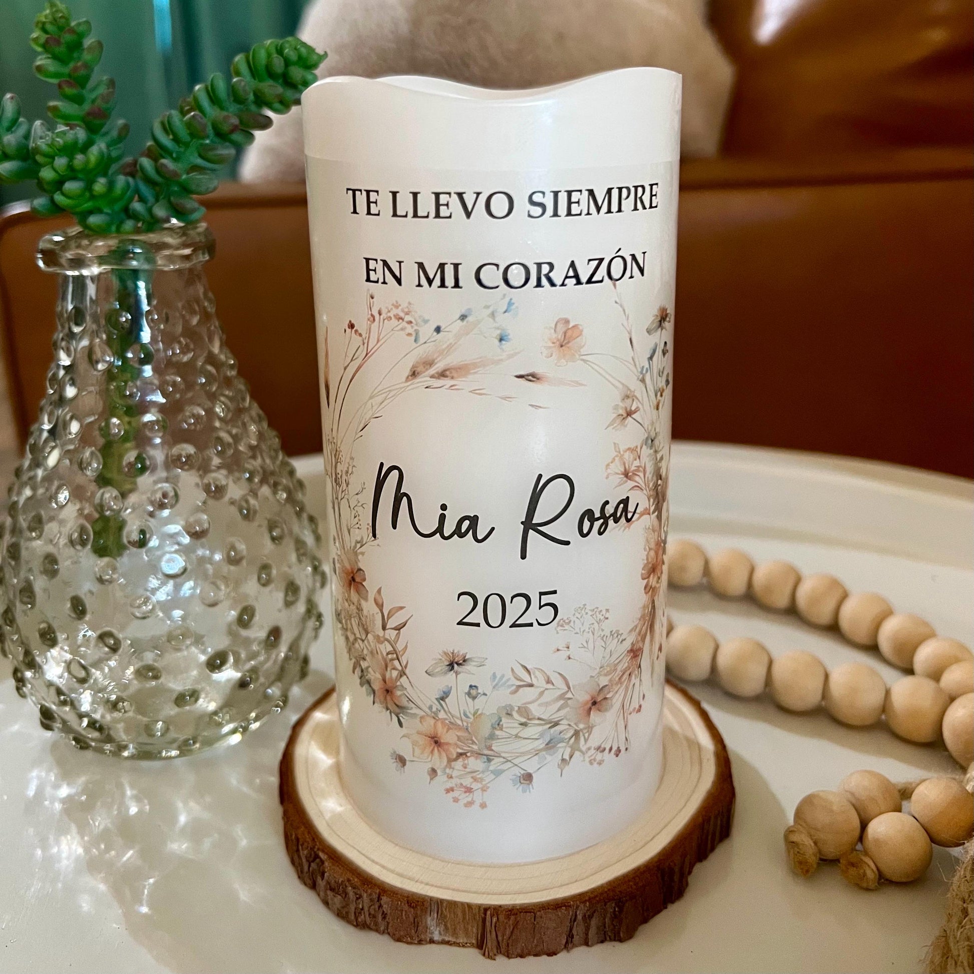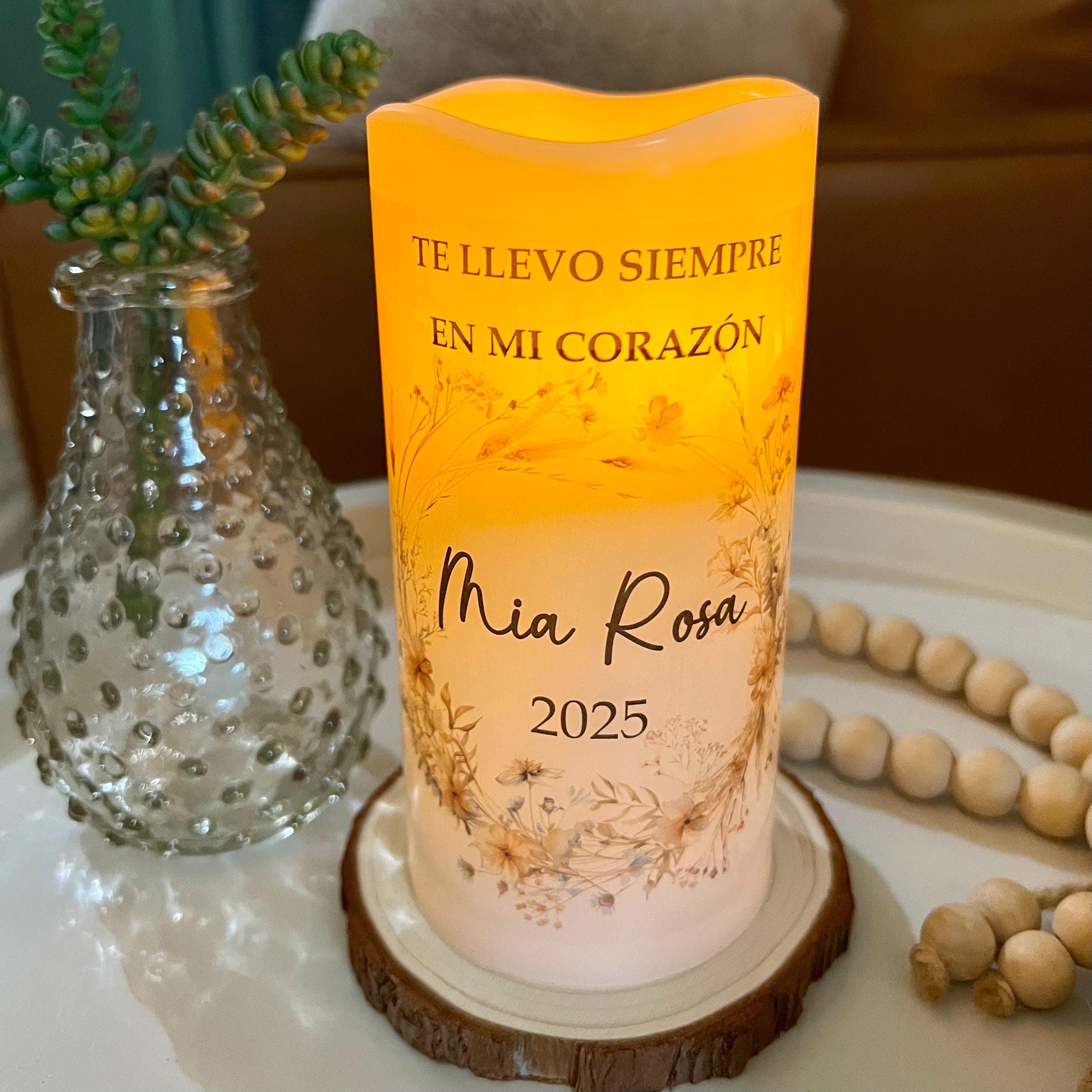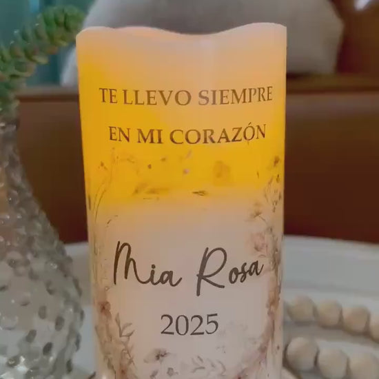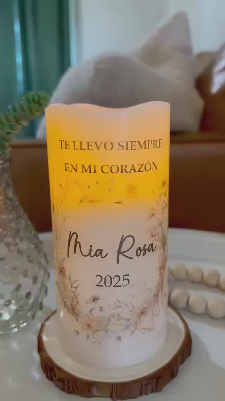 También disponible en español: vela memorial personalizada para bebé, creada para honrar con amor la memoria de un angelito que siempre vivirá en el corazón.