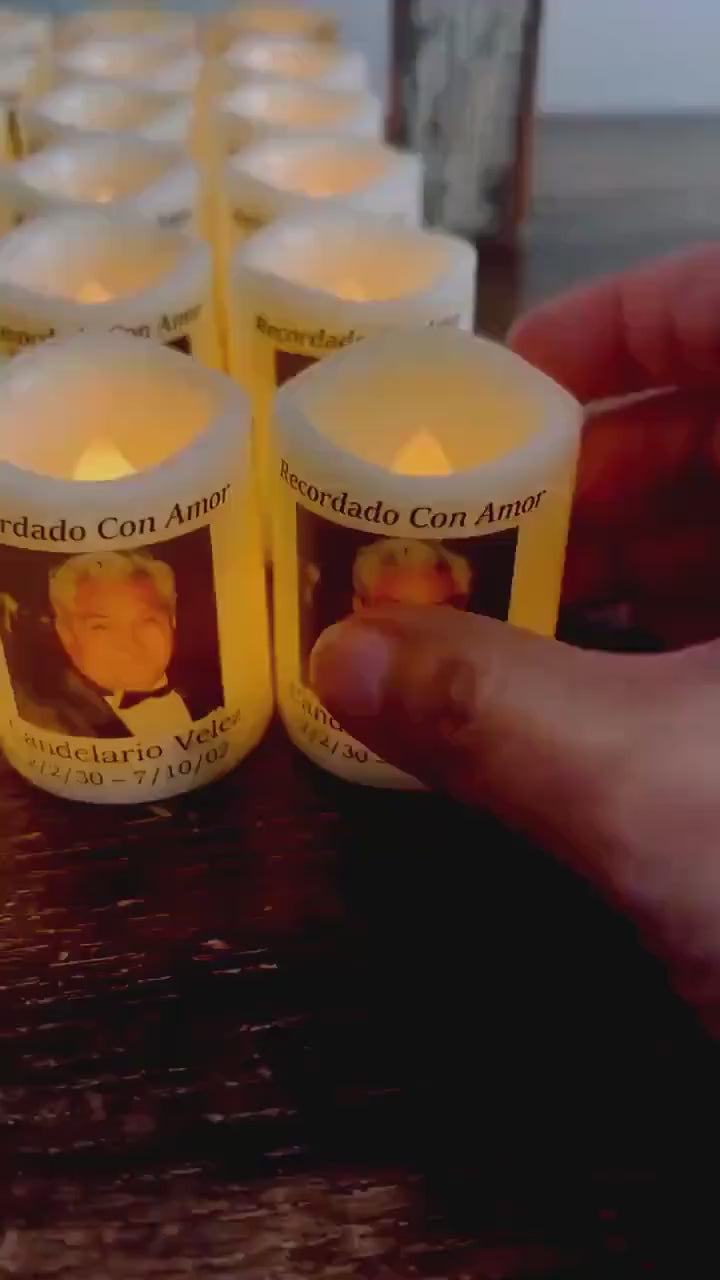 Ofrezca a familiares e invitados un recuerdo significativo que atesorarán mucho después del servicio con un set de 24 veladoras memoriales personalizadas en español, creadas con amor para funerales, rosarios y reuniones en memoria. Cada veladora brilla con una luz suave y cálida — un pequeño pero poderoso recordatorio de que el amor de quienes partieron nunca se apaga, y su memoria vive en cada corazón presente.