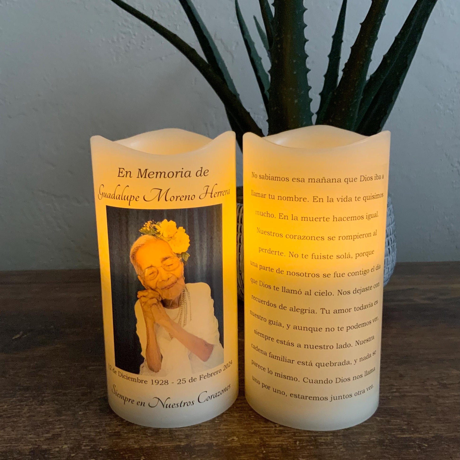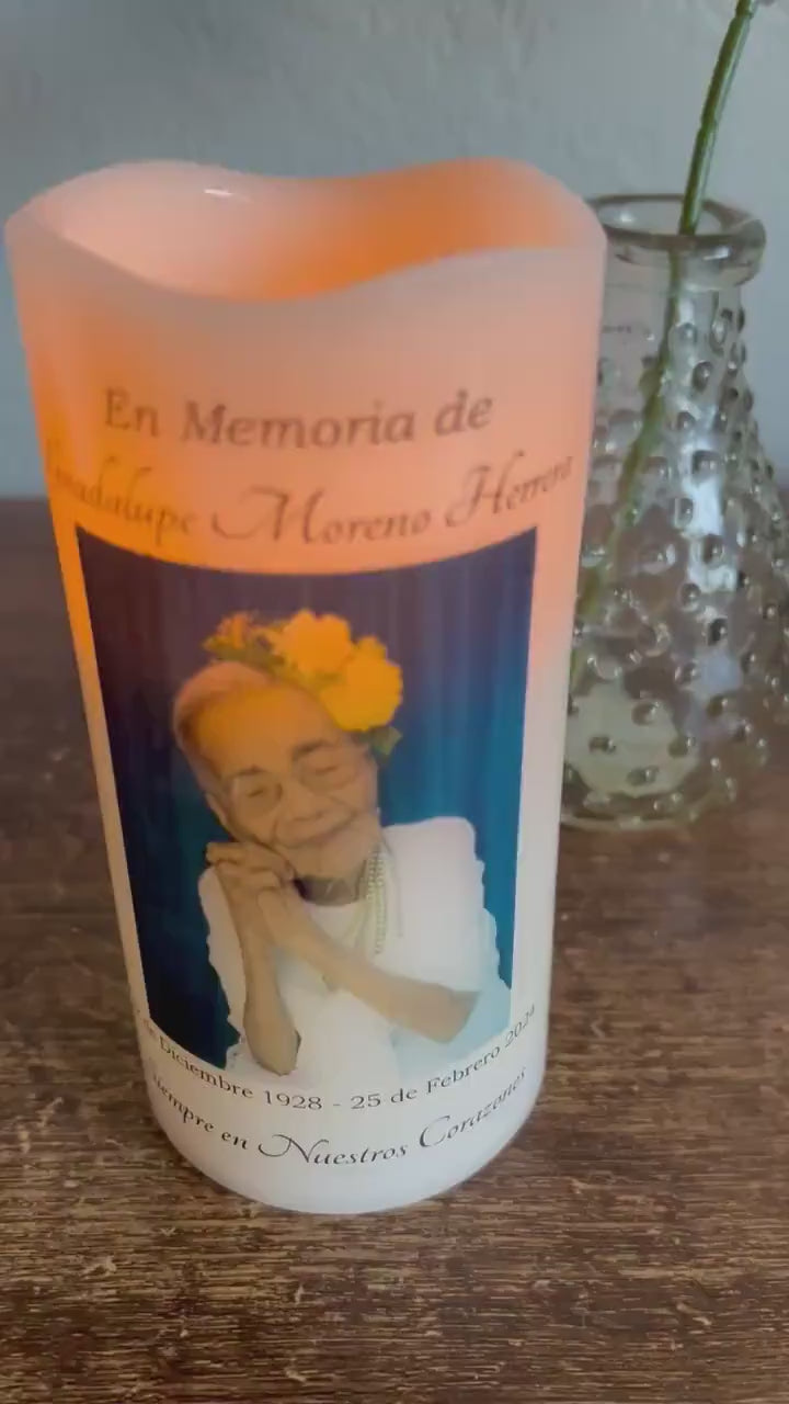 Personalized Spanish Memorial Candle with Photo • Two-Sided LED Remembrance Keepsake • Veladora Memorial Personalizada